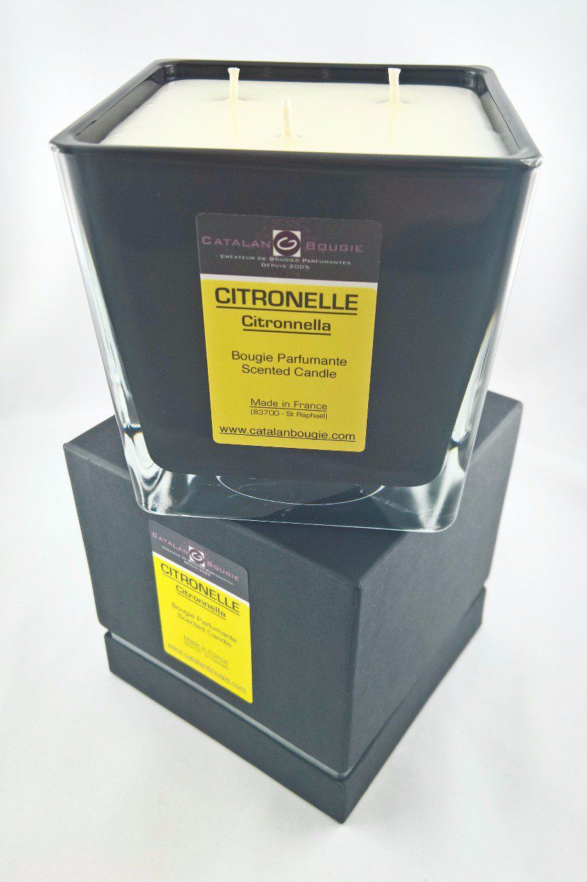 Bougie à la Citronnelle utilisable en intérieur comme en extérieur ayant un parfum répulsif pour les moustiques et autres insectes volants.